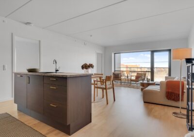 Tre- og fireværelses lyse rummelige lejligheder. Kvalitets køkkener og badeværelser. Store solvendte altaner med udsigt til Svanelunden og grønne frodige gårdrum. En bolig i Central Park Living ligger tæt ved både byliv, natur og offentlig transport.
